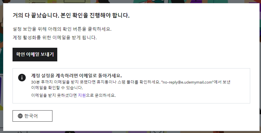 내 계정 활성화 버튼을 누르고 미리 가입해둔 유데미 계정으로 로그인 한다.