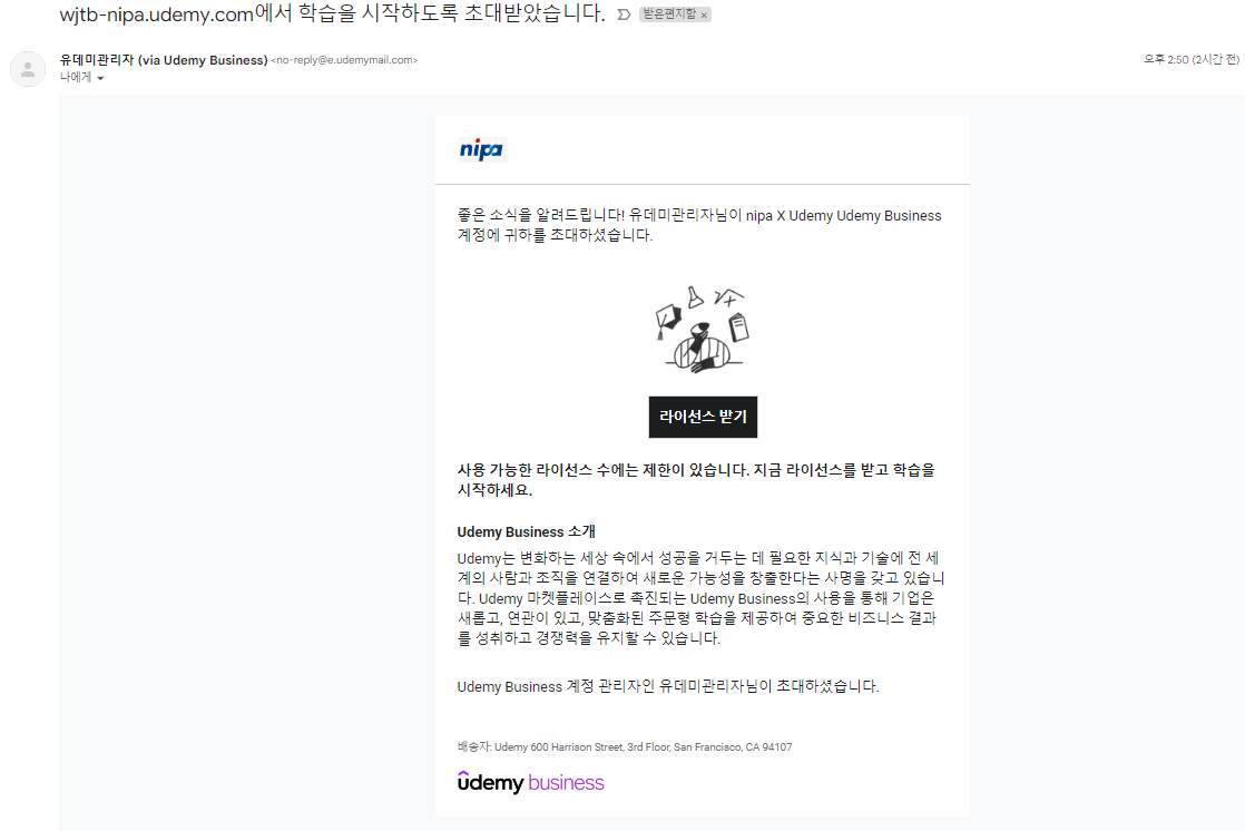 오늘 유데미 강의를 볼 수 있는 초대메일이 왔다.