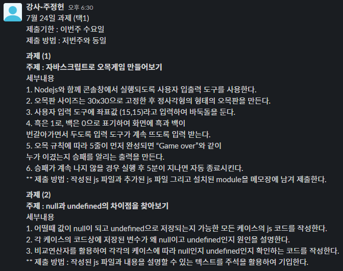 // ? 제출 방법 : 작성된 js 파일과 내용을 설명할 수 있는 텍스트를 주석을 활용하여 기입한다.