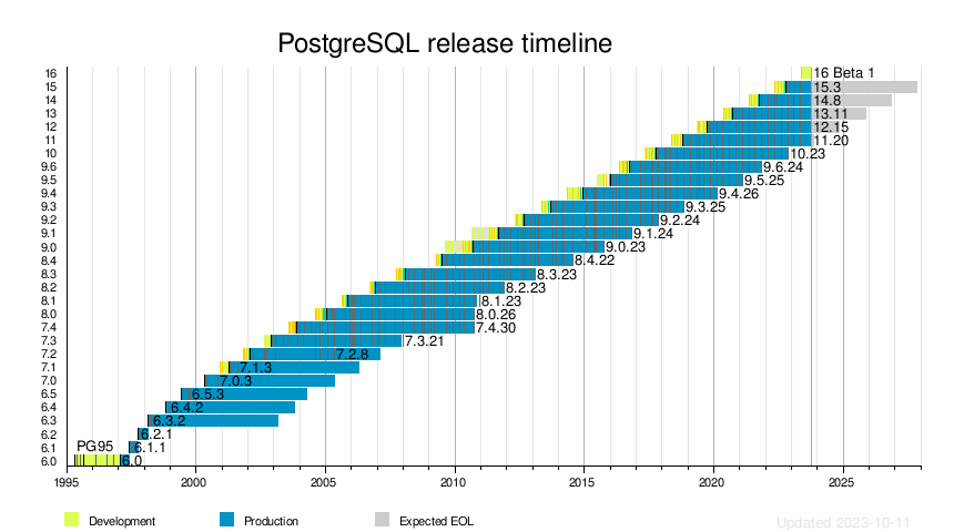 1997년 최초 버전 6.0인 PostgreSQL로 출시