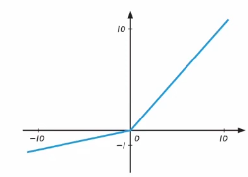 - Leaky 렐루 함수는 전달받은 신호 세기의 합이 음수일 경우에 0인 값을 출력하지 않고,