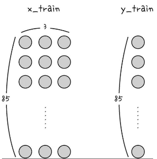 이처럼 한 번에 1*3 형태인 3일치 데이터를 넣기 때문에 (1, look_back)을 넣는다
