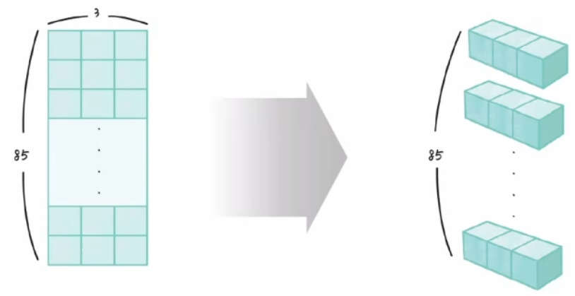 우리가 지금 가진 데이터의 모습은 3개의 데이터가 85층으로 이루어진 모습이다