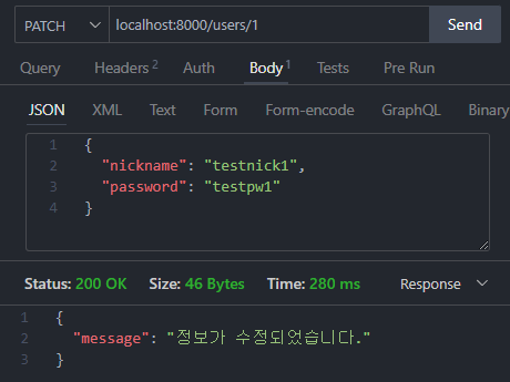 return JSONResponse(content={"message": "정보가 수정되었습니다."}, status_code=200)
