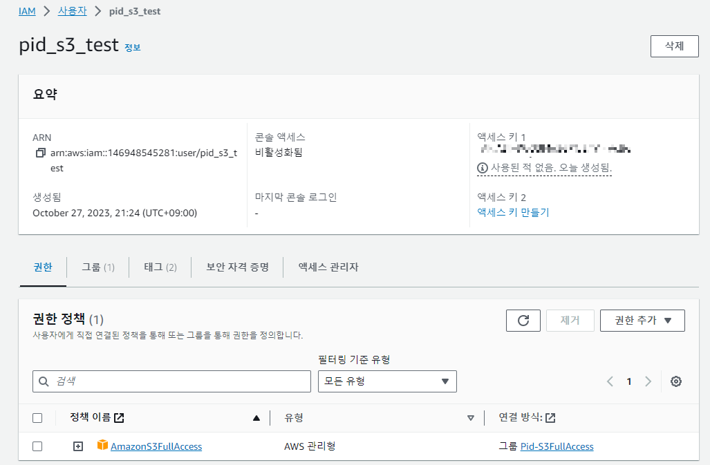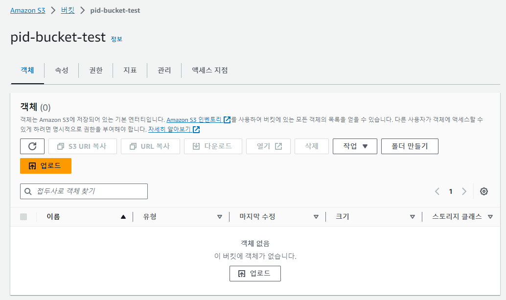 pid_s3_test 를 누르고 들어가면 아래와 같이 뜬다.