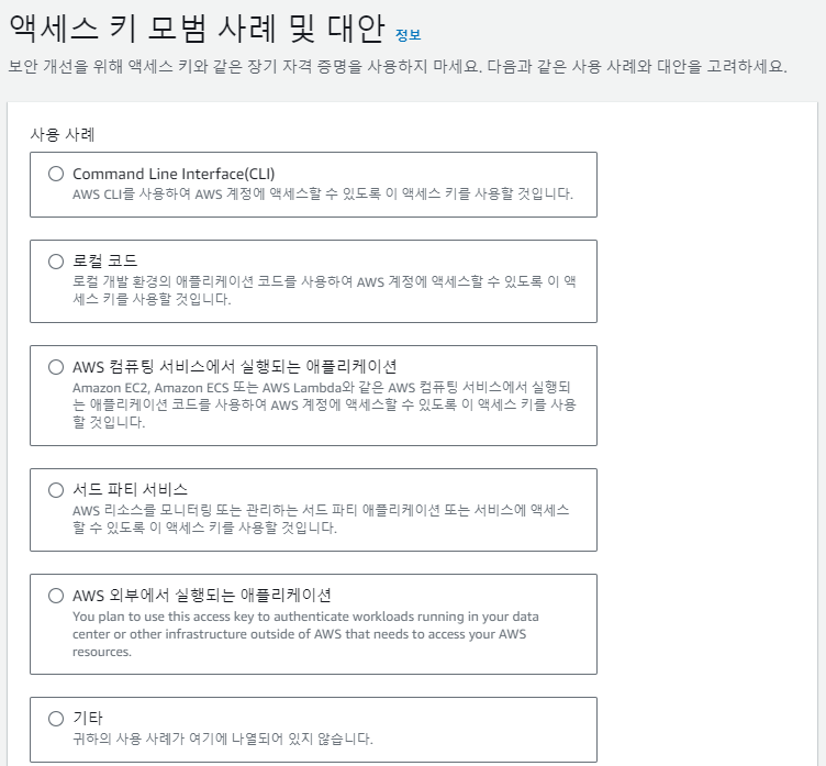 우측 이름 > 보안 자격 증명 > 액세스 관리 > 사용자 그룹에 가준다.