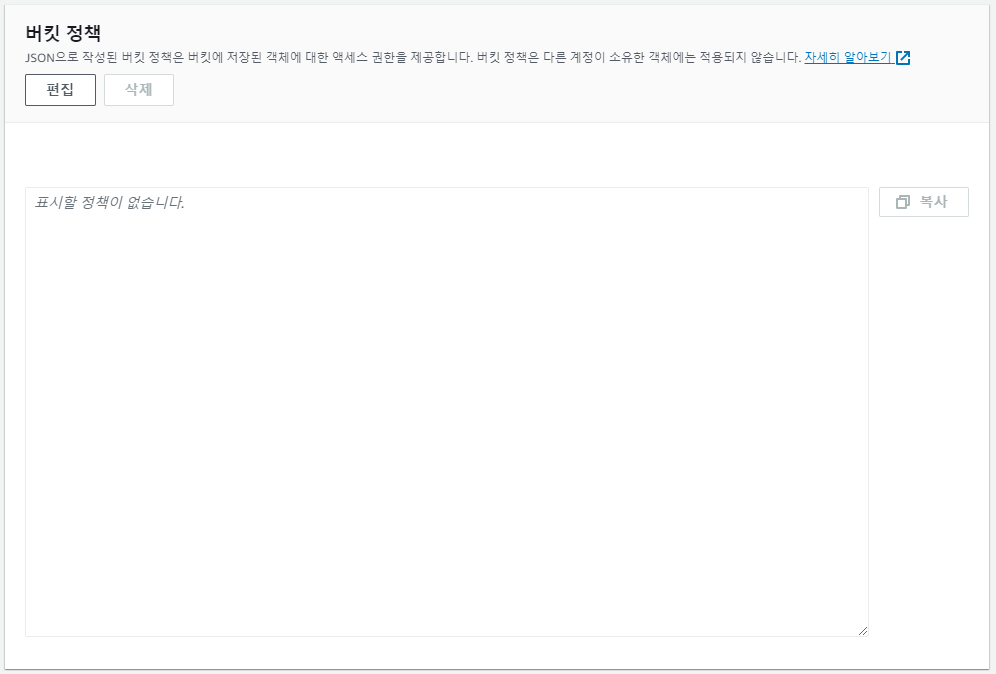 여기서 좀 내려보면 버킷 정책이 보인다.
