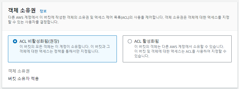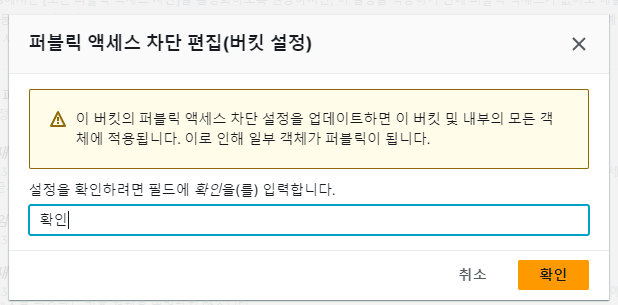 퍼블릭 액세스 차단(버킷 설정) 에서 비활성화 해줘야한다.