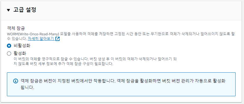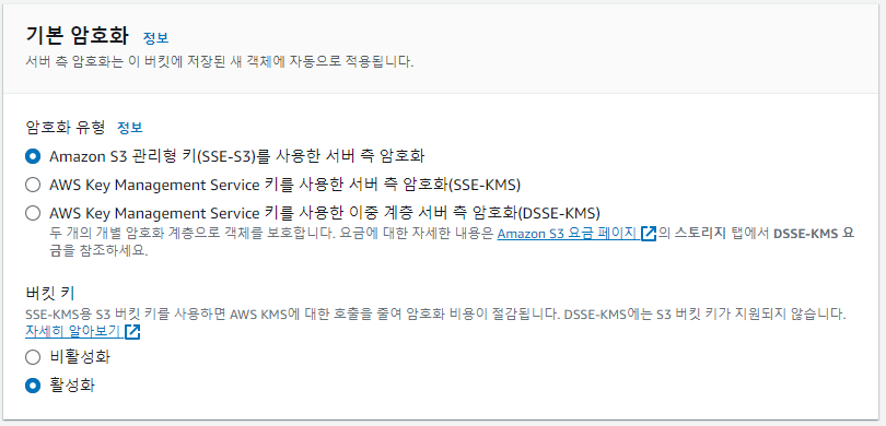 버킷 이름만 pid-bucket-test 로 해서 나머지는 동일하게 생성 했다.