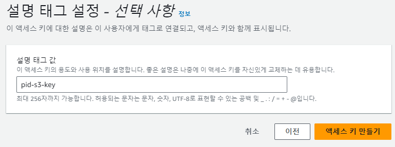 나는 pid-s3-key 로 설정하고 넘어가겠다~