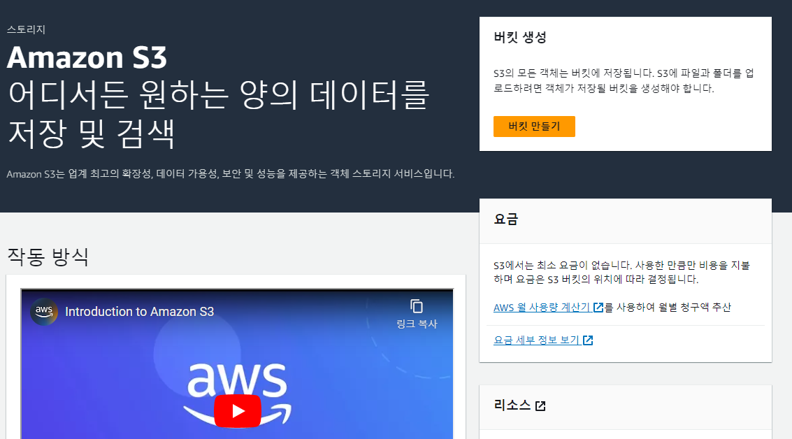 S3 버킷화면에 온다 > 만들었던 버킷에 들어간다.