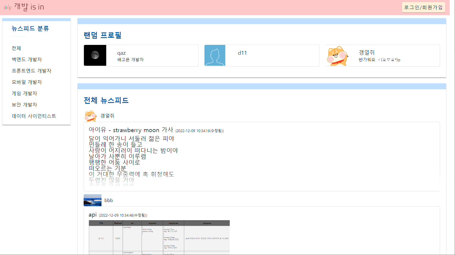 개발 스택별로 구분된 게시판을 나눠 개발과 관련한 꿀팁을 공유 할수있는 뉴스피드를 만들었다