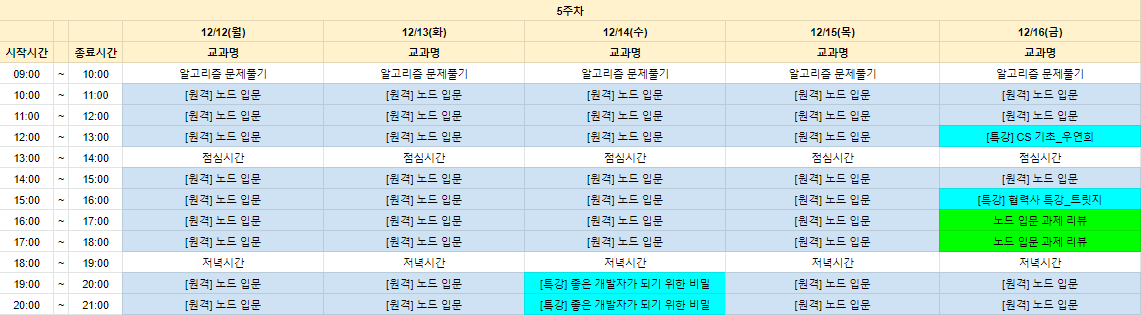이번주 시간표이고 잘 따라갈수있을지 무섭다..