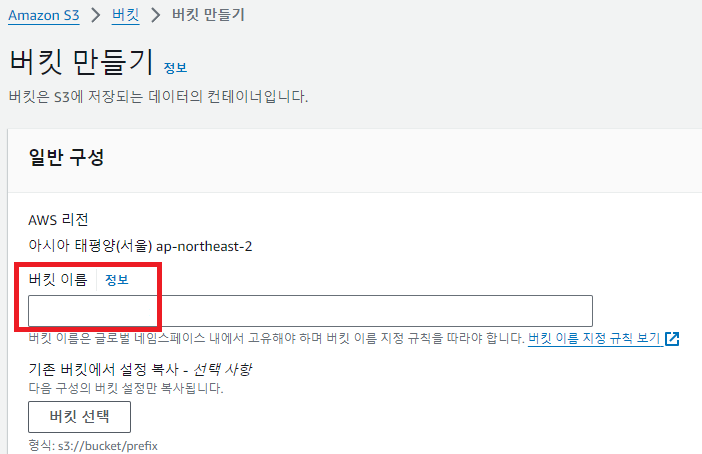 S3에 들어오면 다음과 같은 페이지가 뜬다