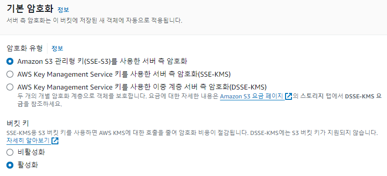 다 설정하고 버킷 만들기 버튼을 눌러 넘어간다.