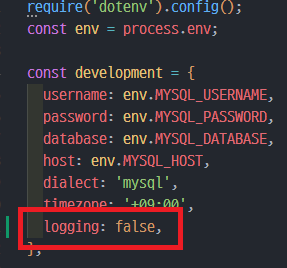시퀄라이즈 로그가 안나온다!! 깨끗~