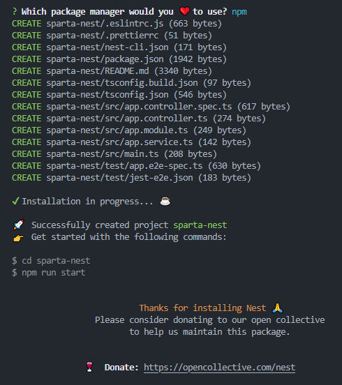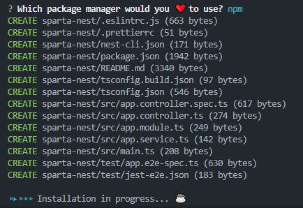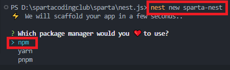 패키지 매니저는 npm 으로 (Nest.js는 npm이 가장 잘 호환이 된다고 한다??)