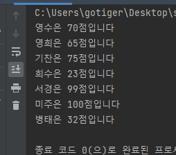 print(f'{name}은 {score}점입니다')